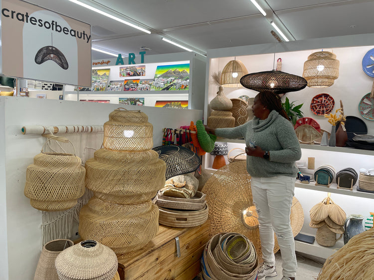 I'm Bernadette, the founder of Crates of Beauty. I run all things except the actual weaving which I leave up to our skilled resident artisans on our weavery in Joostenbergvlakte (Cape Town). We are a 100% locally made lighting and slow commerce collective. Born during COVID, I believe very firmly in empowering our local economy, that the power of Beauty is its ability to connect us to the divine, and that Beauty in its purest form is always sustainable.
